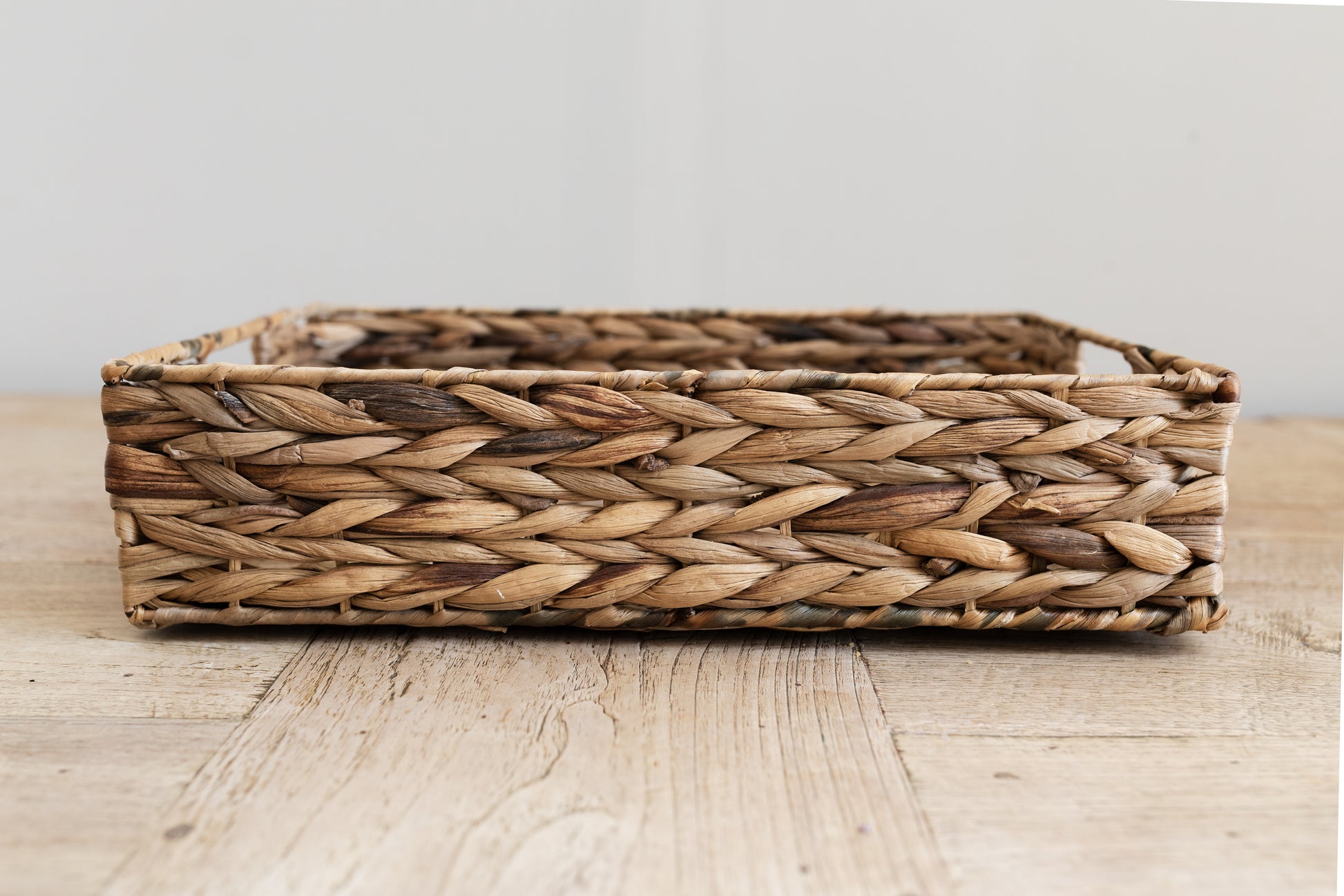 Handwoven from natural water hyacinth, this shallow basket is a beautiful way to display your gifts and can be used as stylish storage afterwards.