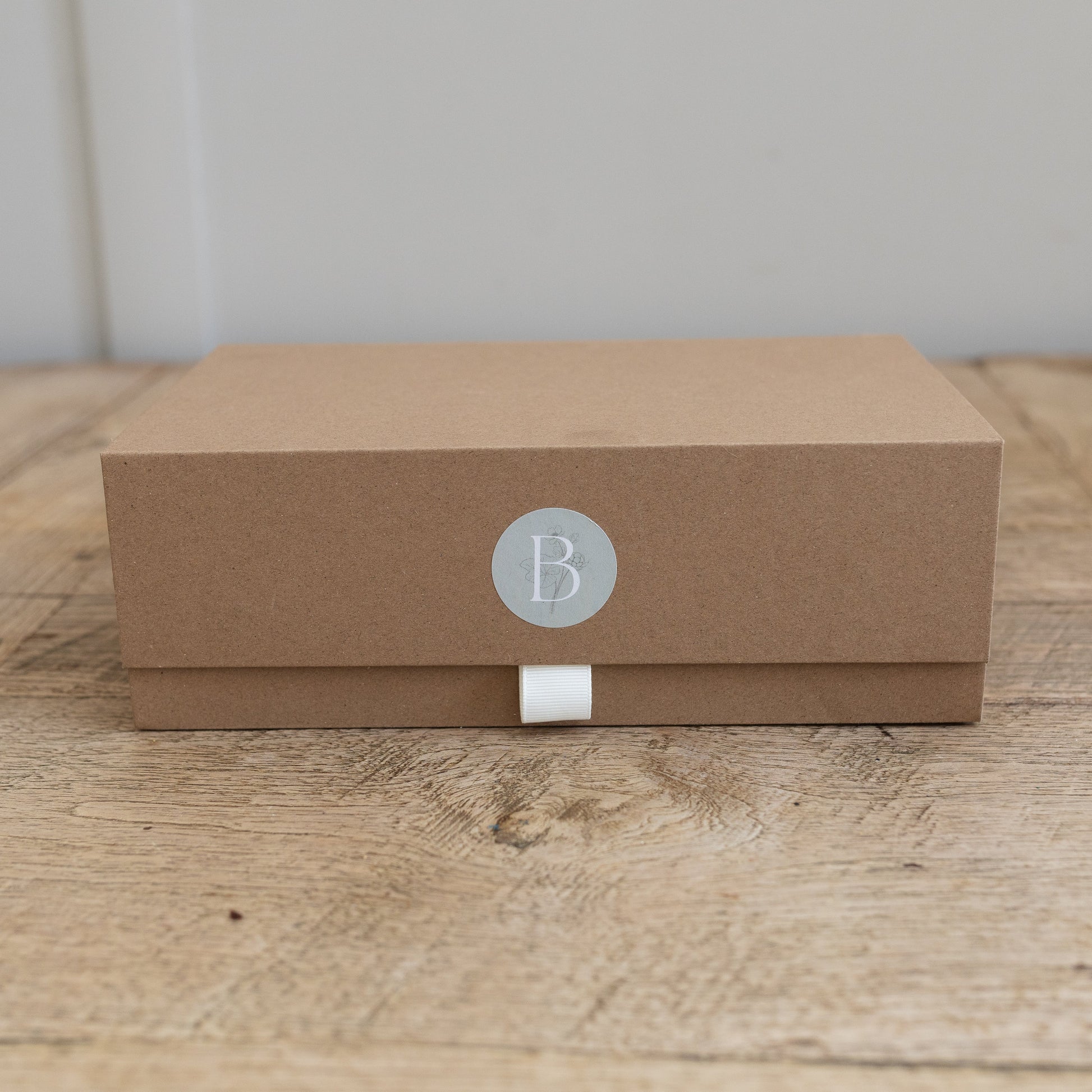 A lovely way to present your gifts. This small magnetic gift box comes with white tissue paper and a white ribbon tag, and can be re-used afterwards as storage for items such as cards or memories.