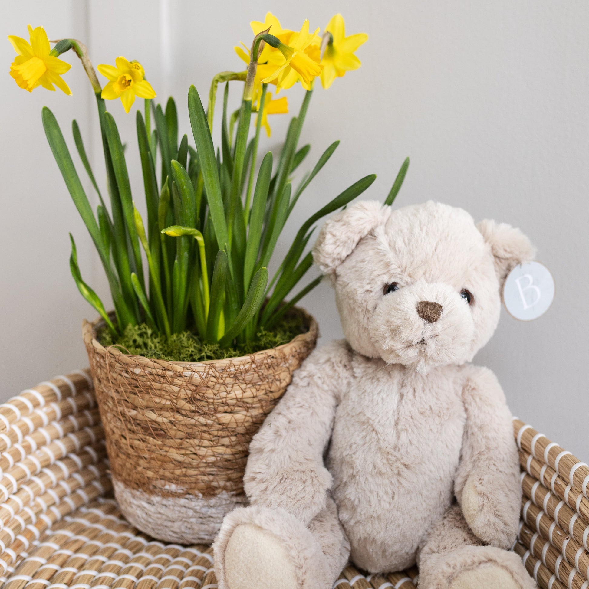 Our signature Bramble bear for the new baby, and a beautiful seasonal flowering plant for the new parents - a thoughtful way to welcome a new arrival.