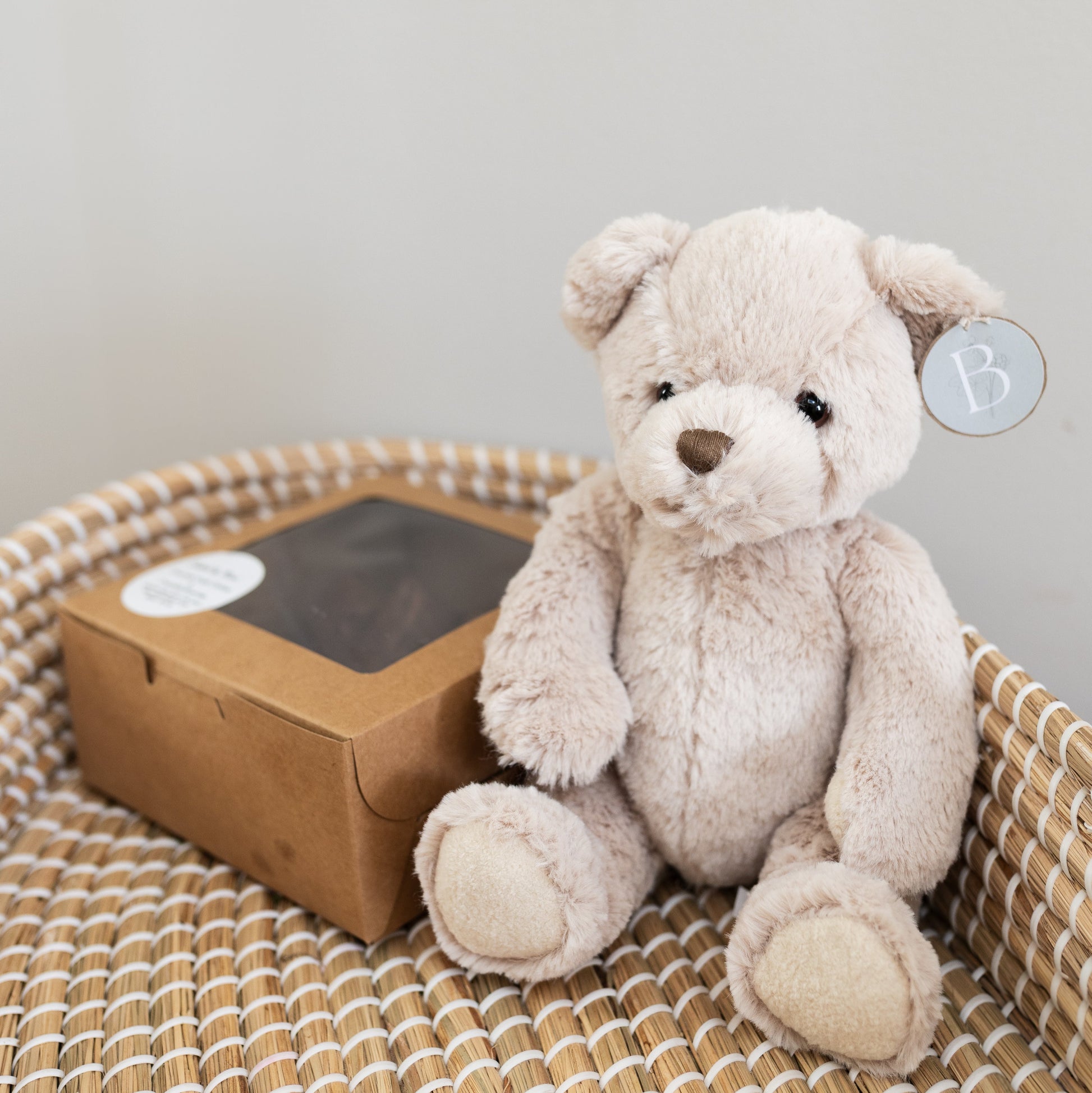 Our signature Bramble bear for the new baby, and a box of delicious brownies and. cookies for the new parents - a thoughtful way to welcome a new arrival.